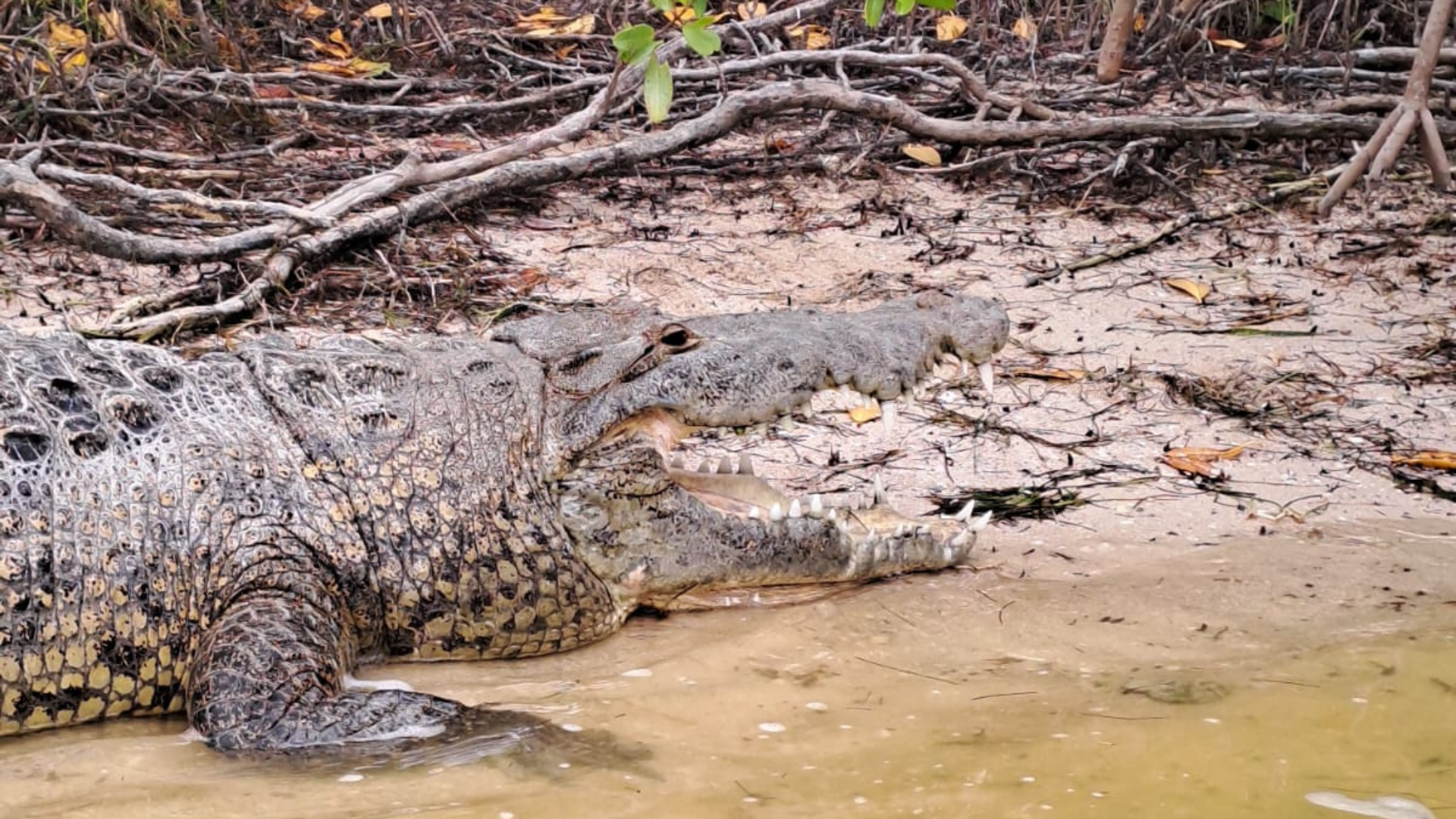 Among the mangrove roots and along the edges of the canals, it is possible to observe one of the region’s most iconic inhabitants: crocodiles, resting in the sun or slowly gliding through the water.